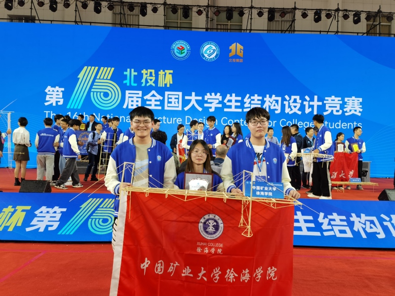 近日,第十六届全国大学生结构设计竞赛在长沙理工大学成功举办,由徐海学院建工系学生马洋、张之栋、张敬艺组成的参赛队伍与包括清华大学、同济大学、浙江大学、东南大学等高校在内的119支参赛队伍同场竞技,经过为期三天紧张激烈的模型制作、现场陈述与答辩、模型加载等赛程,斩获国赛二等奖的好成绩。