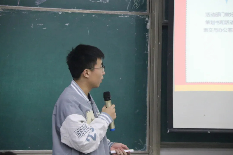 会议开始,各部门代表依次上台介绍部门主要职能、主要成员以及过往活动成果,促进部门之间的交流与了解。接着,各部门干事上台表演精彩节目,如青协邵雨彤同学的《搁浅》、新媒体赵星瑶同学的《身骑白马》等等。节目间还穿插着有趣的小游戏,活跃现场气氛。最后,学生会主席刘鹏崇介绍建工系学生会制度以及工作流程。