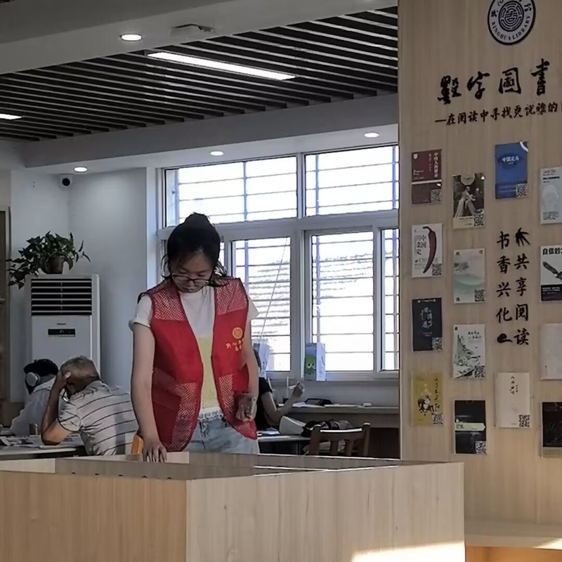 在实践过程中,姚嘉琪同学担任书房管理员一职,主要负责图书的整理归纳以及居民问题的日常解答。每日,她与排列整齐的图书编码为伴。起初面对繁杂的编号,她常因疏忽弄错位置,不得不重新核对。但随着耐心渐增,她逐渐摸索出规律,能快速根据编码将书籍归位。这段经历让她明白,看似简单的整理工作,实则考验着细心与责任。每本书的有序摆放,都关系到读者能否便捷找到所需书籍。
