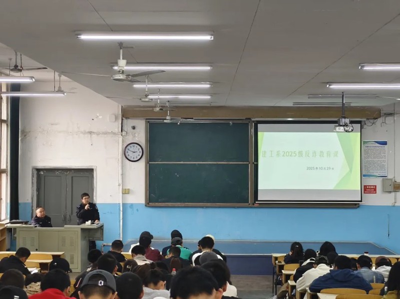 为增强新生反诈防骗意识,营造安全和谐的校园环境,10月29日下午2:10,建工系2025级在主南一开展反诈宣传专题讲座。本次讲座邀请泰山区派出所副所长张迎晖主讲,2025级全体新生到场参加。