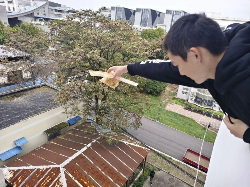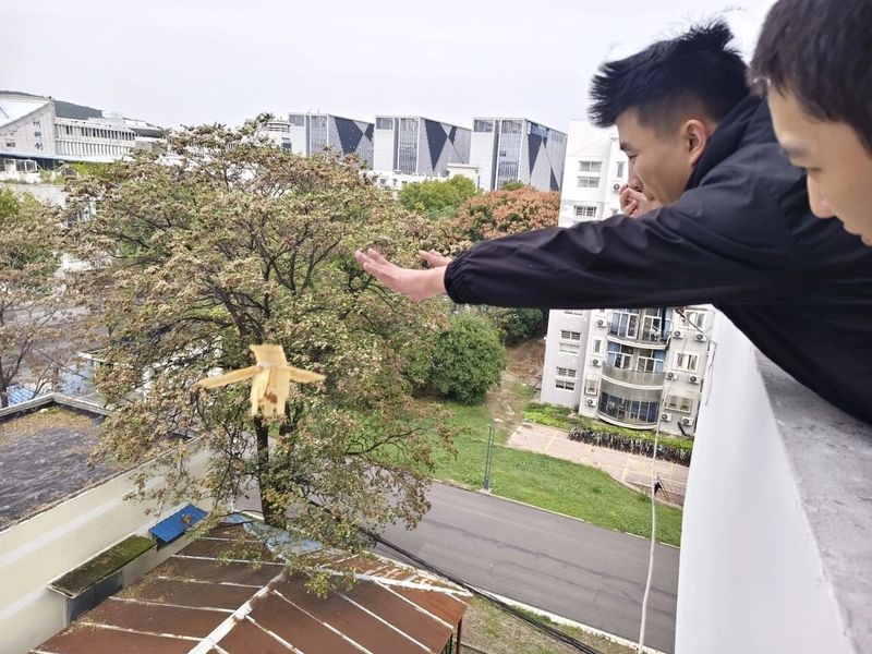 活动中,工作人员依次放飞参赛作品,并对放飞后的鸡蛋进行查看和记录。在同学们的精心设计下,每个模型都构思巧妙,各具特色,性能可靠,获得了现场观众的一致好评。