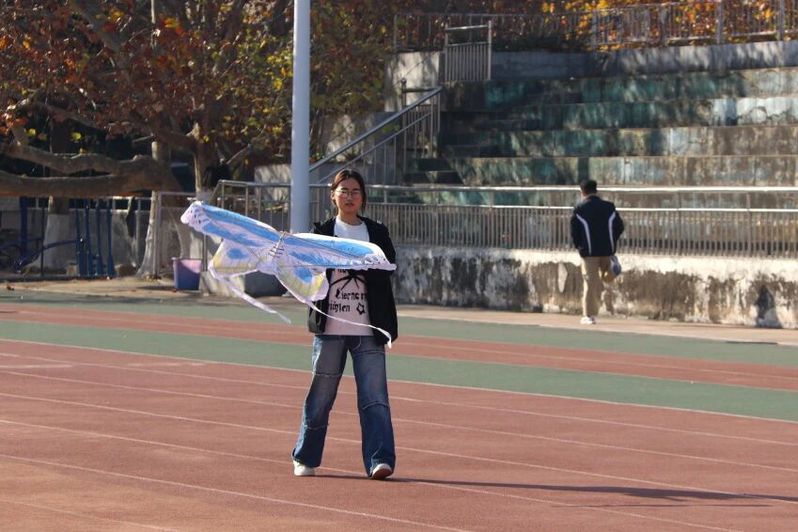 11月22日,物料发放后,各参赛队伍迅速投入创作。同学们以竹条为骨架,构建出框架结构、空间网格等典型土木工程形态,精准把控节点稳定性;以布料为载体,融入非遗纹样、院系标识及爱国主题元素。通过“绑骨架、搭结构、粘面料、绘纹样”等环节,实现了力学原理与艺术表达的有机统一,使每只风筝成为“可实践的专业模型、有温度的文化载体”。11月29日,活动进入放飞环节。在文昌校区田径场,放飞组按编号依次登场,选手们奔跑牵引、调试角度,风筝陆续乘风而起,评委从起飞效率、飞行高度及稳定性等维度进行打分;展示组则通过作品陈列与理念阐述,展现设计巧思,评分侧重创意表达、工艺精度与主题贴合度。活动现场气氛活跃,纸鸢高飞,欢声不断,专业知识在蓝天映衬下生动呈现。