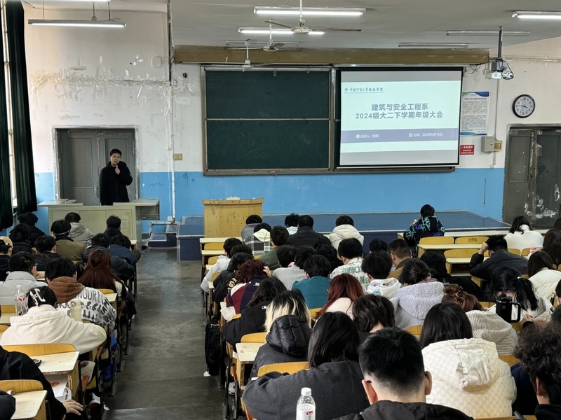 为切实做好新学期学生教育管理工作,强化安全意识、严明纪律要求、营造学习氛围,3月10日下午,建工系2024级在主南一教室召开新学期年级大会。本次年级大会围绕安全规范、宿舍管理、学风建设、实验操作等重点内容展开,由2024级辅导员张鸣老师主持,2024级全体同学共同参会。