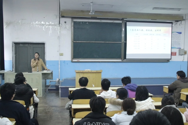 大会伊始,韩秀霞首先通报了上学期的学业情况,分析了挂科的主要原因,并给出了具体的复习建议,强调大一阶段打牢基础的重要性。
