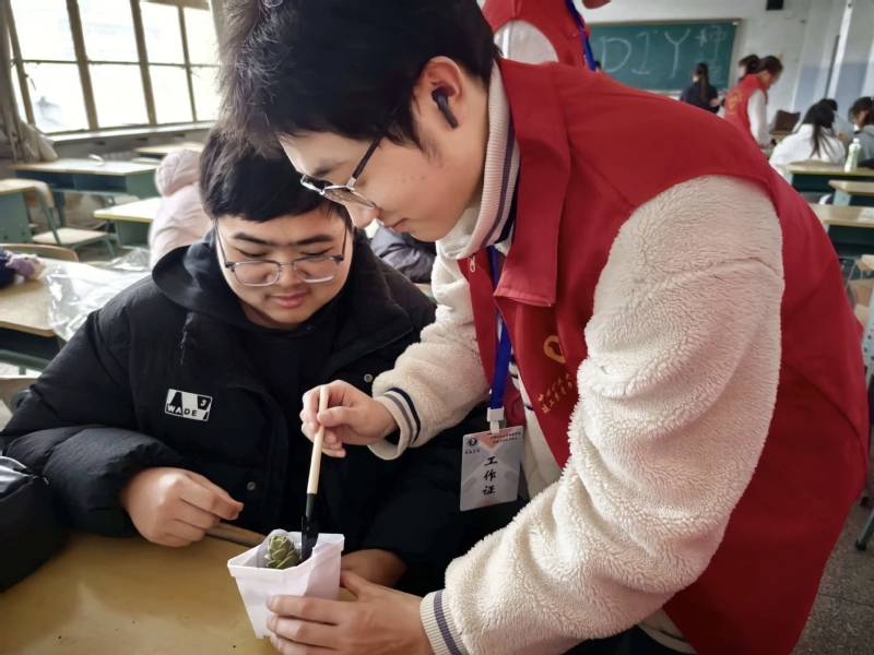 在种植创作环节中,同学们静心投入、巧思搭配,将耐心与善意融入指尖的创作。挑选植株、铺填土壤、点缀装饰,每一步都倾注着同学们对公益的热忱。一盆盆充满生机的多肉,在创意与巧手中焕发出独特的温度,也让手工体验与爱心传递美好相融。