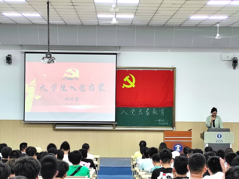 为了加强新生的思想教育,增强同学们的入党积极性和主动性。建工系于2023年9月7日下午16:00在教一南101召开2023级新生入党启蒙教育大会。本次会议由建工系学生党支部书记韩秀霞老师主讲,2023级全体新生参加。